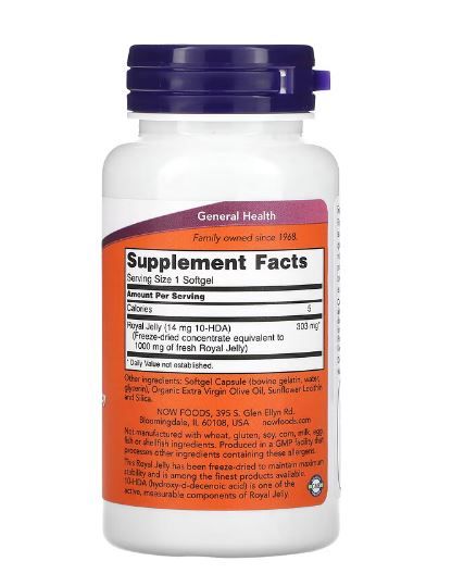 Now Foods Gelée Royale, 1.000 mg, 60 Weichkapseln