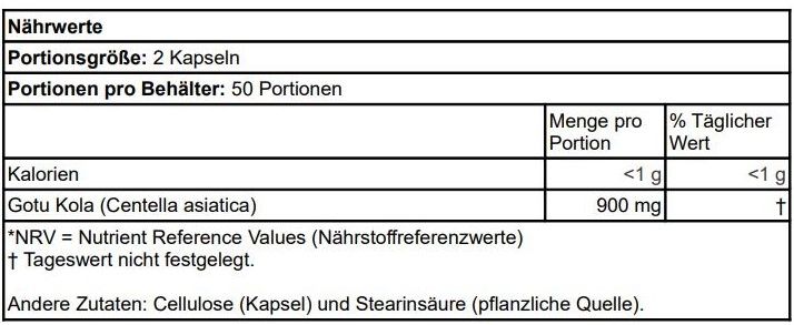 | Beschreibung | Gotu Kola (Centella asiatica) wird seit prähistorischen Zeiten von traditionellen Kräuterkennern eingesetzt. Das breite Anwendungsspektrum ist in Südostasien und Indien seit Jahrhunderten gut dokumentiert und wird weiterhin im Rahmen der modernen Kräuterkunde eingesetzt. Gotu Kola ist nicht mit Kolanüssen verwandt und enthält kein Koffein. |