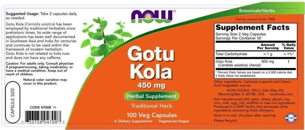 NOW FOODS GOTU KOLA PFLANZENEXTRAKT 450MG 100 KAPS
