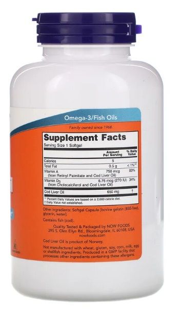 NOW Foods, Lebertran, 650 mg, 250 Weichkapseln