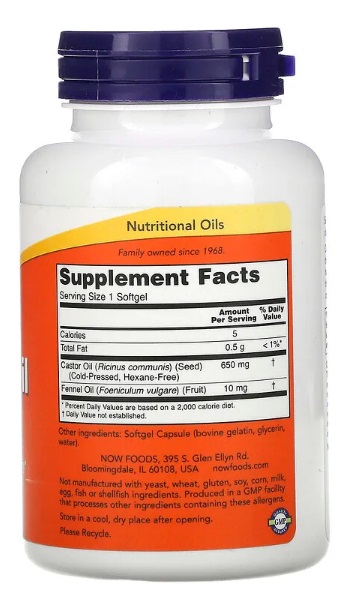 NOW Foods Castor Oil (Rizinus-Öl) 650 mg, 120 Weichtabletten