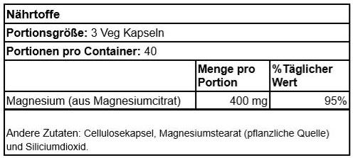 | Inhalt | Cellulosekapsel, Magnesiumstearat (pflanzliche Quelle) und Siliciumdioxid. |