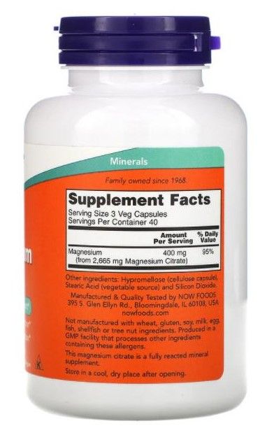 NOW FOODS MAGNESIUMCITRAT 120 VEGETARISCHE KAPSELN