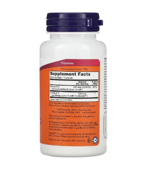 Now Foods Mega D-3 & MK-7, Vitamin D3 und MK-7, 120 Kapseln