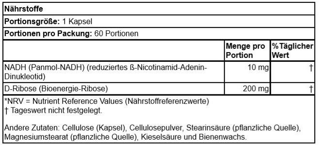 | Beschreibung | NADH (Reduced Nicotinamide Adenine Dinucleotide) ist ein in allen lebenden Zellen vorkommendes Koenzym, das aus Vitamin B-3, auch bekannt als Niacin, gewonnen wird. NADH ist ein essentieller Kofaktor für Hunderte von biochemischen Reaktionen und wird in großem Umfang bei der Produktion von Zellenergie (ATP) verwendet. NADH spielt auch eine wichtige Rolle bei der Synthese der Neurotransmitter im Gehirn. Obwohl NADH außerhalb des Körpers normalerweise nicht stabil ist, nutzt Panmol NADH ein patentiertes Verfahren zur natürlichen Bewahrung der Wirksamkeit, wobei der Körper mit stabilem und bioverfügbarem NADH versorgt wird. |