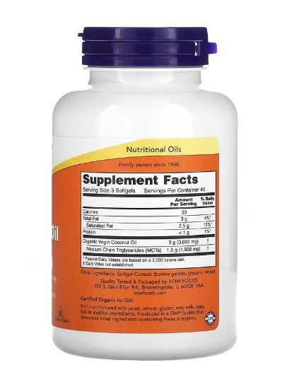 Now Foods Natives Kokosnussöl, 1.000 mg, 120 Weichkapseln