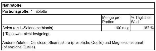 | Beschreibung | Now Foods Selen-Kapseln verwenden L-Selenmethionin als Selenquelle. Dies ist eine biologisch aktive Form, die sehr effektiv absorbiert wird. Selen schutz die Zellen vor oxidativen Stress von den freien Radikalen verursacht • Unterstützt die Funktion des Immunsystems • Wichtiger Co-Faktor für viele Enzyme • Notwendig für die Funktion der Schilddrüse • Wichtig für die Fruchtbarkeit bei Männern • Trägt zur Erhaltung normaler Haare und Nägel bei. |