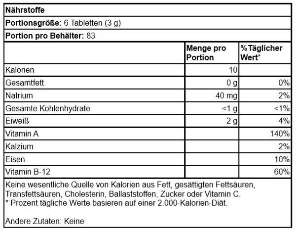 | Inhalt | 100% Bio Spirulina - und sonst nichts. |