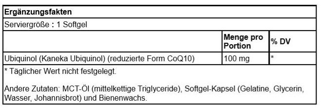 | Ubiquinol (Kaneka Ubiquinol) (reduzierte Form CoQ10) | 100 mg | * |