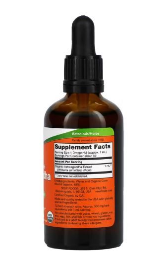 Now Foods Zertifiziertes Bio-Ashwagandha-Extrakt, 59 ml
