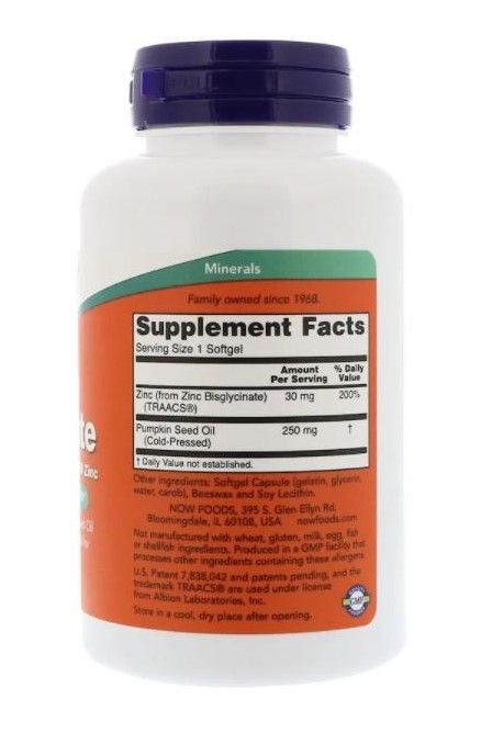 NOW FOODS ZINK-GLYCINAT (CHELATISIERTES ZINK) 30 MG, 120 SOFTGELKAPS
