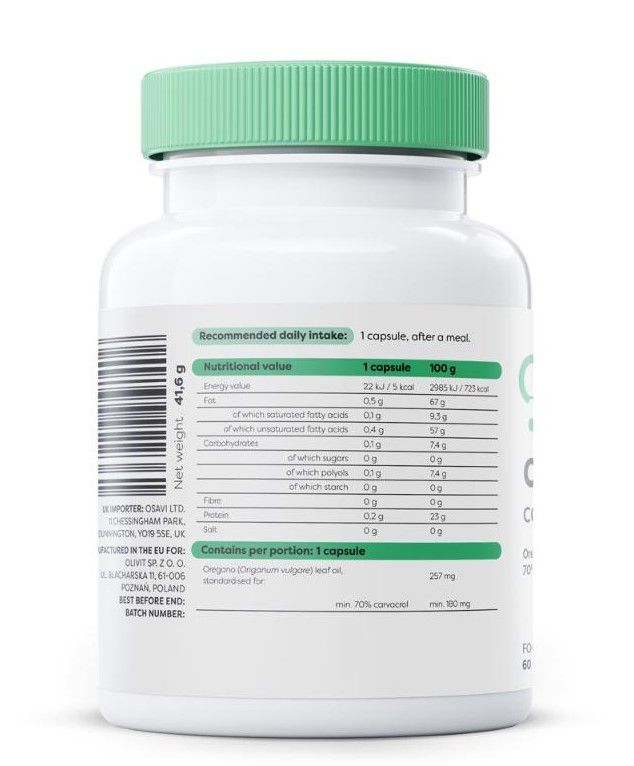 - Contains oregano leaf oil (Origanum vulgare) containing min. 70% of carvacrol