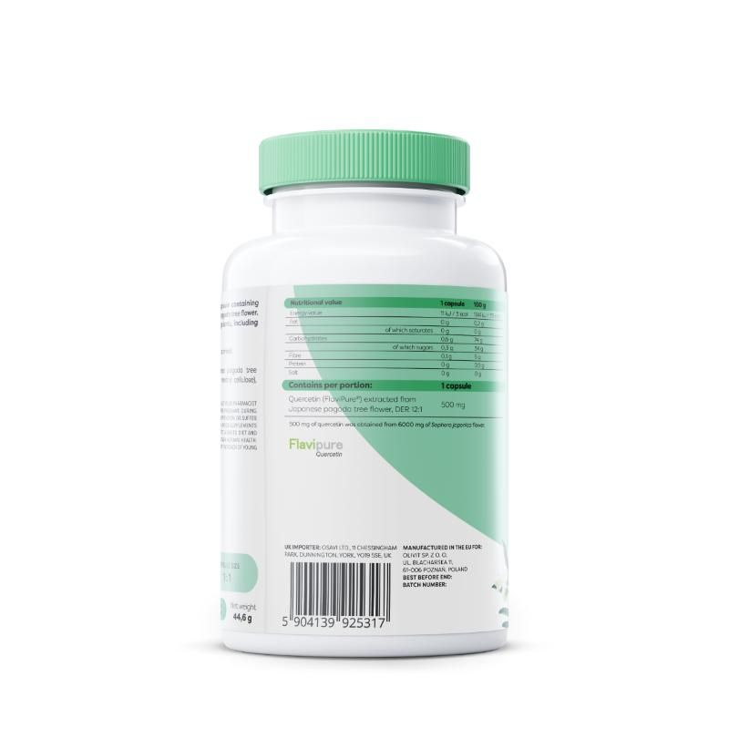 - Eine Kapsel enthält bis zu 500 mg Quercetin, ein pflanzliches Flavonoid, das natürlicherweise in Obst, Gemüse und bestimmten Blumen vorkommt.