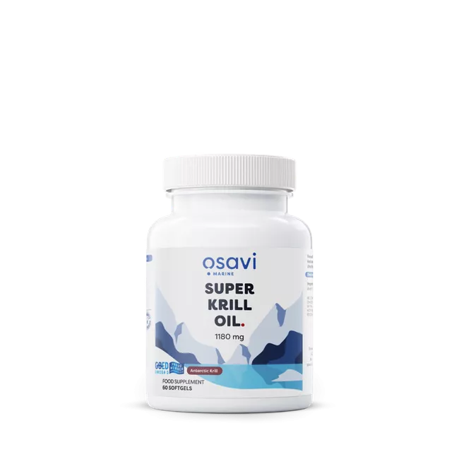 Do you want to take comprehensive care of your body? Are you looking for an effective way to improve the condition of your heart and liver? Or do you want to take care of proper fat metabolism? Krill oil will take care of your body in multiple ways. Find out how you can benefit from taking Super Krill Oil 1180 mg. There is no doubt that krill oil offers a range of health benefits, with heart and liver health at the top of that list. This is all due to the unique nutrients that this valuable oil provides: the omega-3 fatty acids DHA and EPA and choline, in the form of highly bioavailable phospholipids[1]. This natural complex acts as a multi-nutrient supplement, supporting the heart, brain, joints, liver, skin and much more. DHA and EPA acids contribute to the proper functioning of the heart, while DHA contributes to optimal brain function and the maintenance of good vision. Choline, meanwhile, supports liver function and contributes to normal homocysteine and fat metabolism. Choline also plays an important role in signalling in cell membranes and in early brain development [2]. Choline in krill oil is found in the natural form of phosphatidylcholine - the form found in food - making it easy to meet the daily requirement for this nutrient. Super Krill Oil 1180 mg contains SUPERBA Boost® krill oil, the effects of which are supported by several clinical studies. Krill oil intake has been shown to increase blood levels of omega-3 fatty acids in as little as 30 days [3], and has also been shown to lower triglyceride levels[4,5] and increase blood levels of so-called good HDL cholesterol [6], which reduces the risk of cardiovascular disease. In vivo studies have also shown the positive effects of krill oil on liver health. It supports liver function by reducing fat accumulation and contributes to proper fat metabolism. In addition, krill oil supplementation contributes to an increase in polyunsaturated fatty acids (PUFAs) and oxylipins in adipose tissue and liver, and may also have an effect on alleviating inflammation associated with obesity [7,8]. SUPERBA Boost® krill oil has also been studied for its effect on sports performance. It has been shown to enhance the body's immune function, which can benefit the performance and recovery of people performing intense exercise [9]. It has also been shown that exercise can significantly reduce choline levels, which in turn contributes to reduced performance. Choline is an extremely important component for the production of sufficient neurotransmitters, which play a key role in muscle function [10]. It is therefore an indispensable component during exercise. Studies also show that krill oil has an effect on cognitive function[11] and a beneficial effect on improving the wellbeing of people with arthritis symptoms [12,13]. A 12-week clinical trial found that SUPERBA Boost® krill oil had an excellent effect on skin condition, increasing skin hydration and elasticity [14]. Deficiency of omega-3 fatty acids can lead to mood disorders [15] and skin deterioration (manifested, among other things, by rough and flaky skin and inflammation). Insufficient omega-3 is also a risk factor for the development of cardiovascular diseases. These acids can be obtained from the diet by eating fatty fish (e.g. salmon, tuna, mackerel). An insufficient supply of choline, on the other hand, can cause liver problems - including non-alcoholic fatty liver disease - and muscle damage. It is worth noting that the body cannot produce enough choline, so it is important to obtain it from the diet. Its sources are mainly animal products (e.g. meat, fish, eggs and milk and milk products), whole grains, nuts, seeds and beans [2]. Supplementation with krill oil, which contains both DHA, EPA and choline, may also be helpful in taking care of the body's balance. Super Krill Oil 1180 mg contains krill oil rich in omega-3 EPA and DHA acids, phospholipids and highly bioavailable choline in an easy-to-swallow soft capsule form. The supplement is produced in accordance with the GOED (World EPA and DHA Organisation) monograph. The oil is obtained from wild Antarctic krill (Euphausia superba) sourced from pure Antarctic waters - the process uses the patented Eco-Harvesting® sustainable fishing method. SUPERBA Boost® krill oil is also MSC and FOS certified. The recommended daily serving (2 capsules) contains up to 1180 mg of SUPERBA Boost® krill oil, which provides the essential fatty acids EPA (min. 178 mg) and DHA (min. 82 mg) and phospholipids (min. 660 mg) including choline (min. 82.6 mg). |
