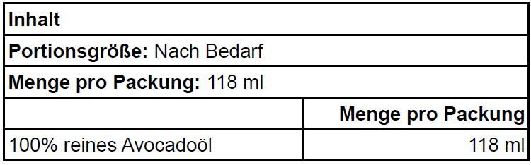 | Inhalt | NOW FOODS REINES AVOCADO-ÖL 118 ML |
