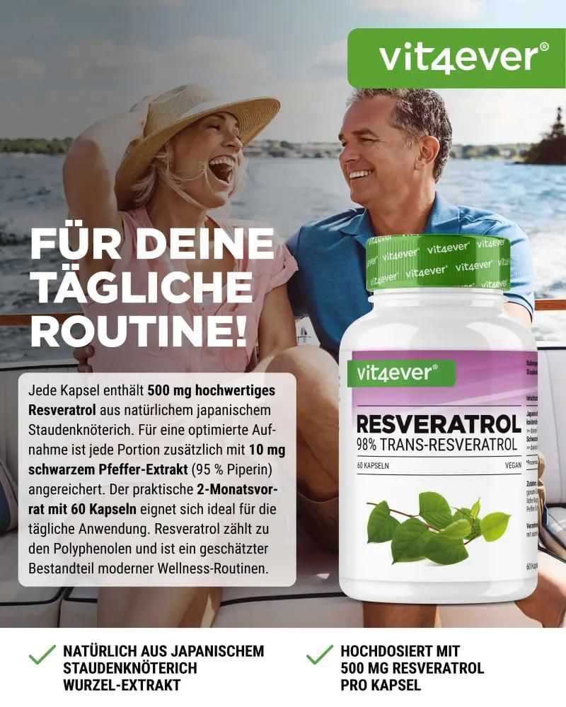 - Hochdosierte Kapseln mit 500 mg echtem Resveratrol.