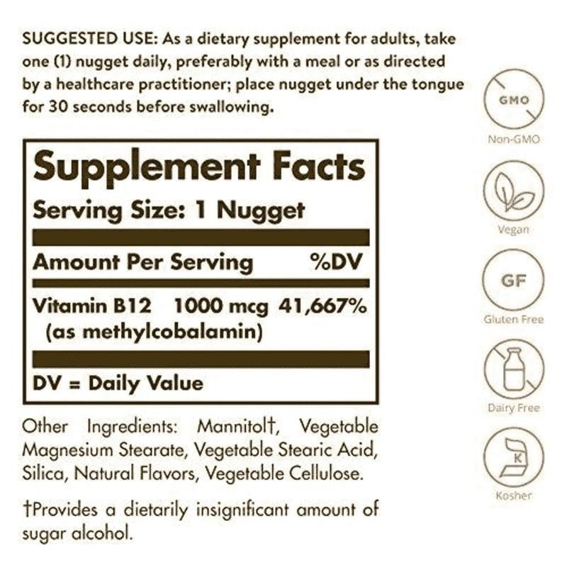 Solgar Sublingual Methylcobalamin (Vitamin B12), 1000mcg, 60 Nuggets