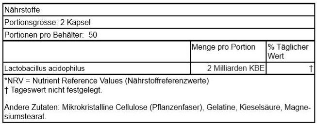 | Beschreibung | Unterstützen Sie die Verdauung und erhalten Sie eine gesunde Flora mit Swanson Acidophilus! Während wir Bakterien normalerweise für schlecht halten, gibt es bestimmte "freundliche" Arten wie Lactobacillus acidophilus, die den Darm bevölkern, wo sie die Verdauung unterstützen und dabei helfen, ein gesundes Gleichgewicht der Mikroflora aufrechtzuerhalten. Jede Kapsel ist eine großartige Möglichkeit, die Menge dieser gesundheitsfördernden Bakterien in Ihrem Körper wieder aufzufüllen und liefert über eine Milliarde lebensfähiger Organismen. |