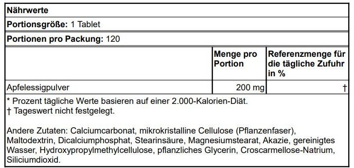 SWANSON APFELESSIG HOCH DOSIERT 200 MG 120 Tabletten