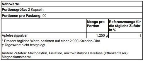 | Beschreibung | Auf der Suche nach praktischen Apfelessig-Ergänzungen? Swansons ultrahochwirksame Apfelessigpillen bringen diese klassische Diäthilfe mit der stärksten Version aller Zeiten in die Moderne. Jede Kapsel enthält 625 mg Apfelessig, damit Sie sich am besten fühlen, während Sie Ihre Gewichtsziele erreichen. Sie müssen jedoch kein Dieter sein, um von Apfelessig und seinen einzigartigen Systemspülfunktionen zu profitieren. |
