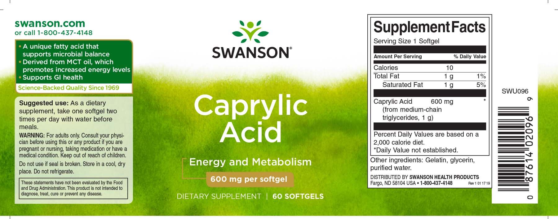 SWANSON CAPRYLSÄURE 600 MG 60 SOFTGELS