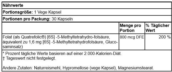Swanson Folat 5-Methyltetrahydrofolsäure (als Quatrefolic®) 800 mcg 30 Kapseln