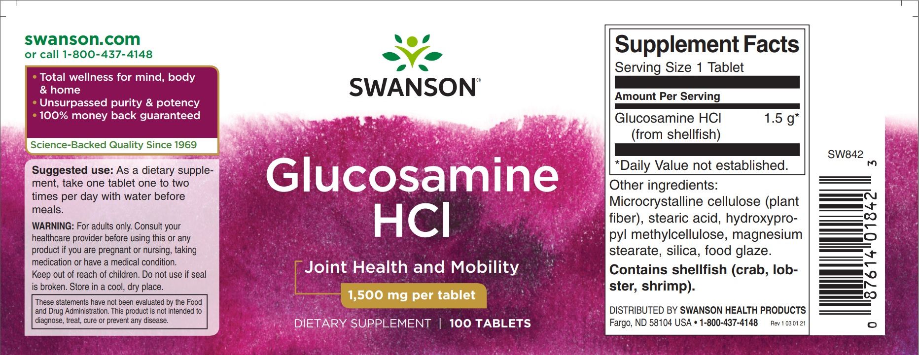 Swanson Glucosamin Hcl 1.500 mg 100 Tabletten