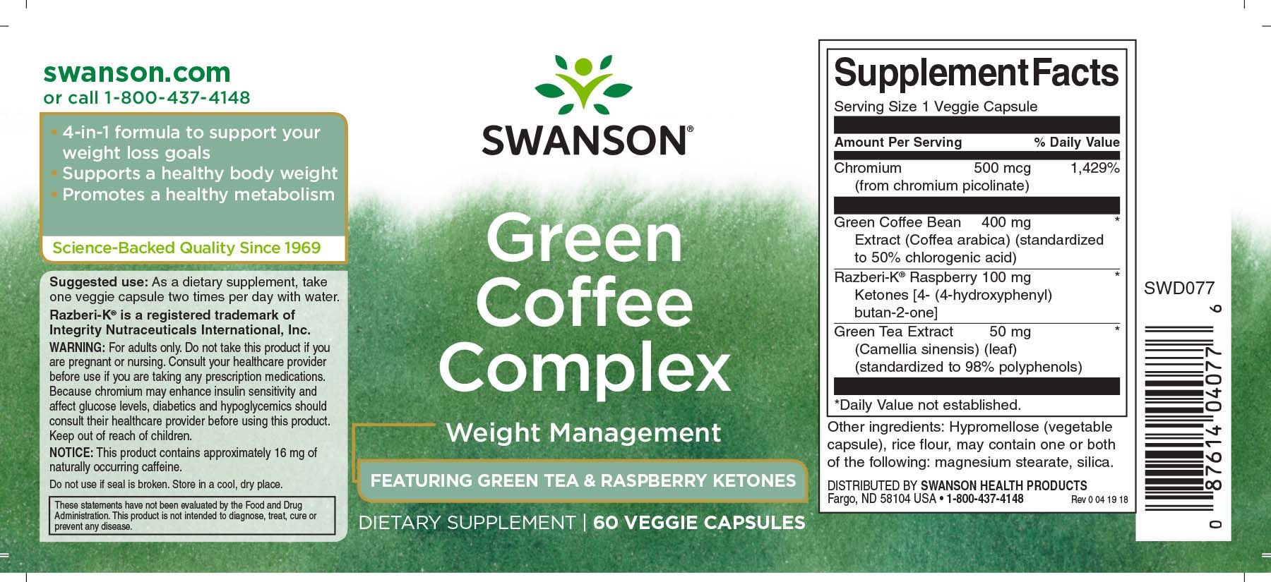 Swanson Green Coffee Complex - Grüner Tee & Himbeerketone 60 veg. Kapseln