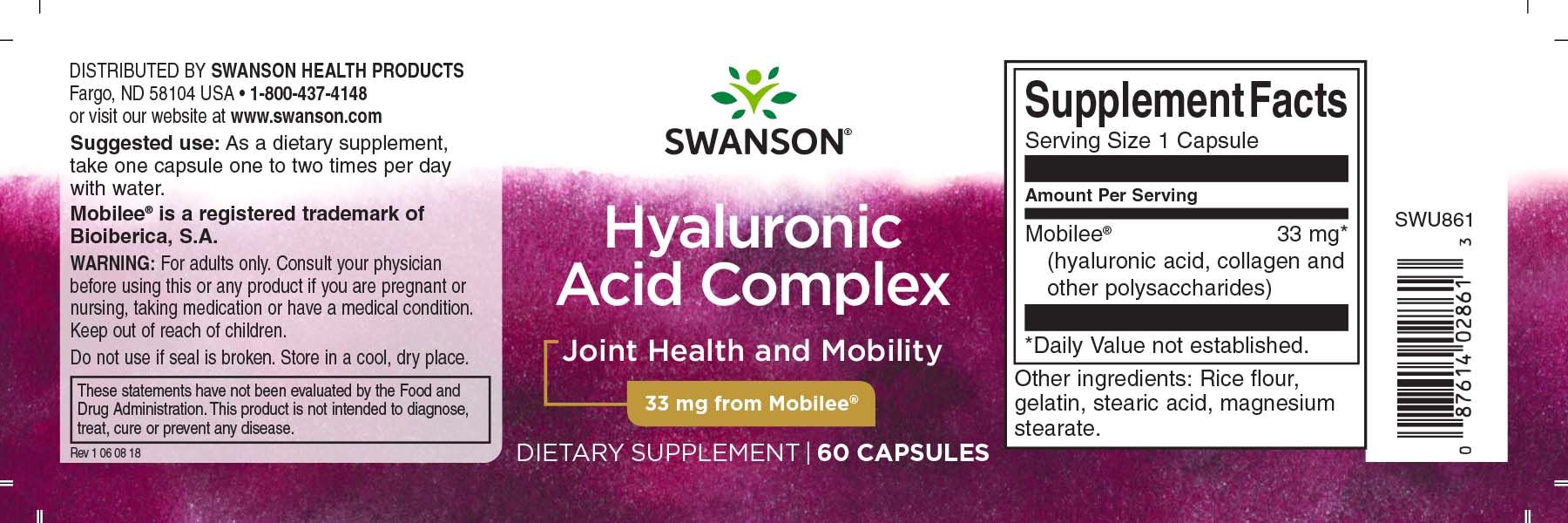 Swanson Hyal-Joint Hyaluronsäure-Komplex 33 mg 60 Kapseln