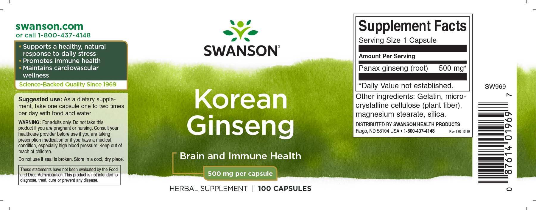 SWANSON KOREANISCHER GINSENG 500 MG 100 KAPSEL