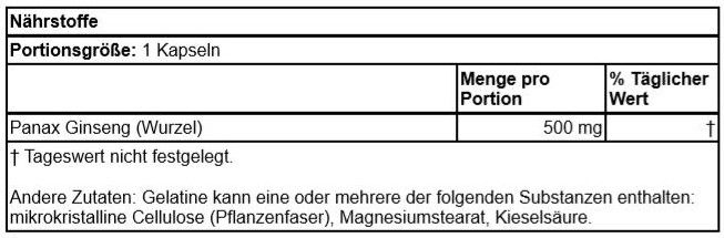 | Beschreibung | In weiten Teilen Asiens wird Ginseng seit Jahrhunderten als Stärkungsmittel eingesetzt, um das Wohlbefinden des gesamten Körpers zu fördern. Heute kennen wir es mehr für seine erstaunlichen Vorteile in Bezug auf Stressbekämpfung, Stärkung des Immunsystems, sexuelle Gesundheit und Verbesserung der geistigen Leistungsfähigkeit. Jede der praktischen Kapseln Swansons koreanischen Swanson Premium Brand-Ginsengs enthält 500 mg Ginsengwurzel. |