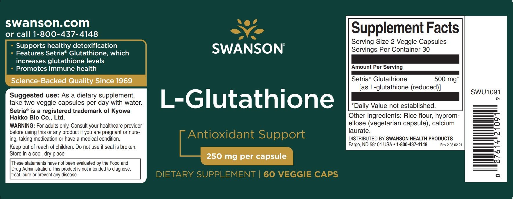 Swanson L-Glutathion 250 mg 60 vegetarische Kapseln
