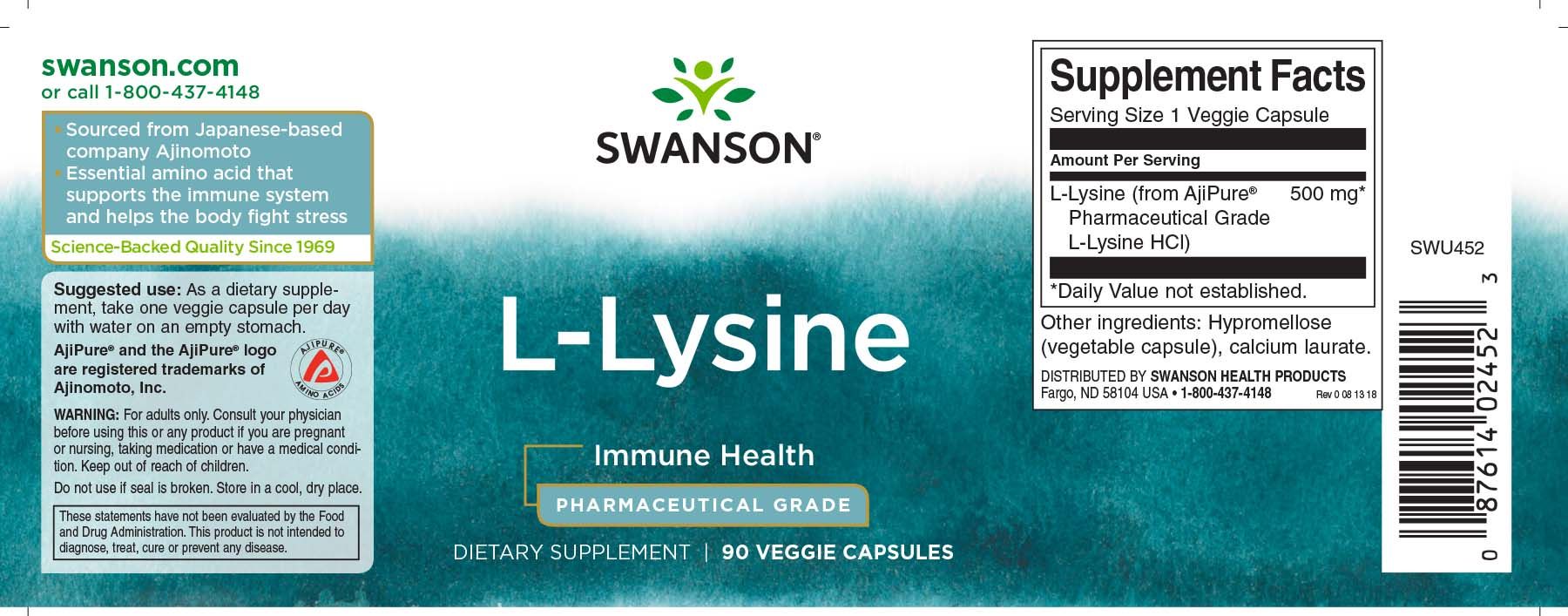 Swanson L-Lysin Pharmazeutische Qualität 500 mg 90 vegetarische Kapseln