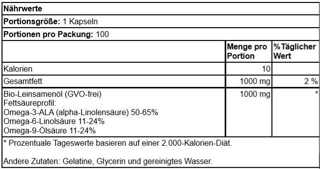 | Beschreibung | Jedes Softgel enthält ein Verhältnis 4: 1 von Omega-3- zu Omega-6-EFAs. Die Softgels werden aus biologischem, gentechnikfreiem Leinsamen hergestellt und kalt verarbeitet, um hochwertiges Öl zu erzeugen. Die OmegaTru-Formel von Swanson ist immer noch ein Favorit. Swanson's Leinsamenöl ist 100% BIO, kaltgepresst und garantiert optimale EFA-Konzentrationen. Diese handlichen, hochabsorbierbaren Softgels macht es leicht reichlich Omega-3 Fettsäuren von Leinsamen zu bekommen. |