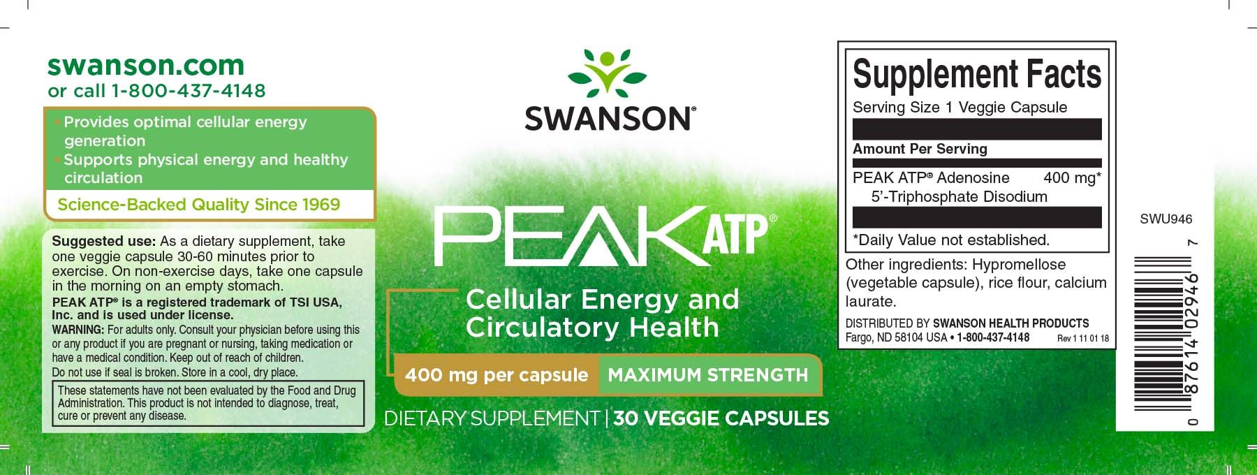 Swanson Maximum Strength Peak ATP 400 30 Kapseln