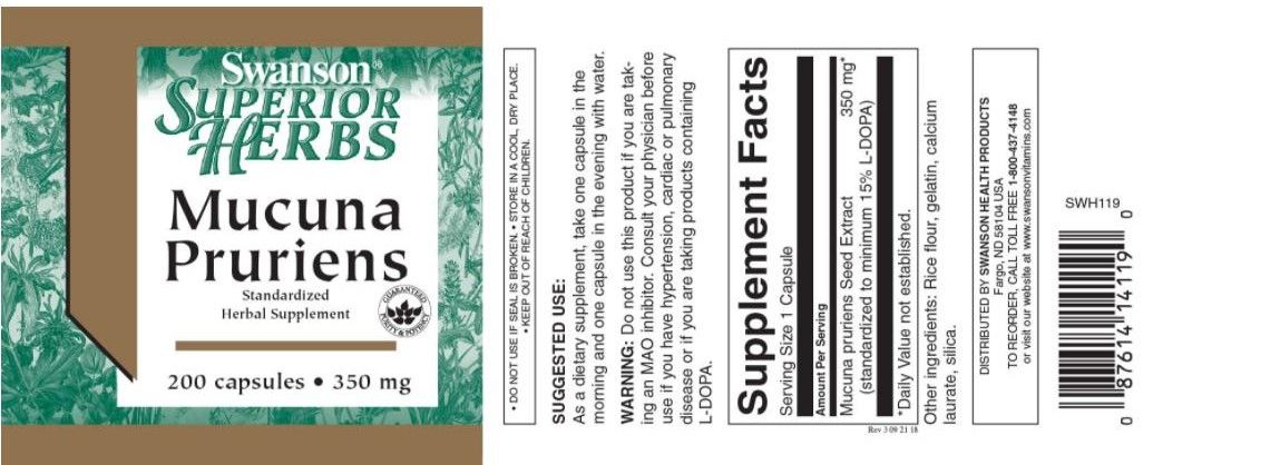 SWANSON MUCUNA PRURIENS, 350MG (STANDARDISIERT AUF MIN. 15% L-DOPA) - 200 KAPS