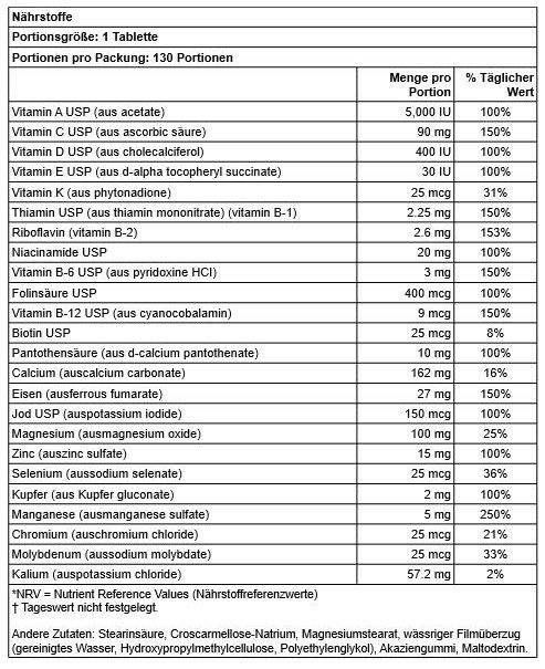 - Liefert einen ganzen Tag lang 16 essentielle Vitamine und Mineralien in einer Tablette