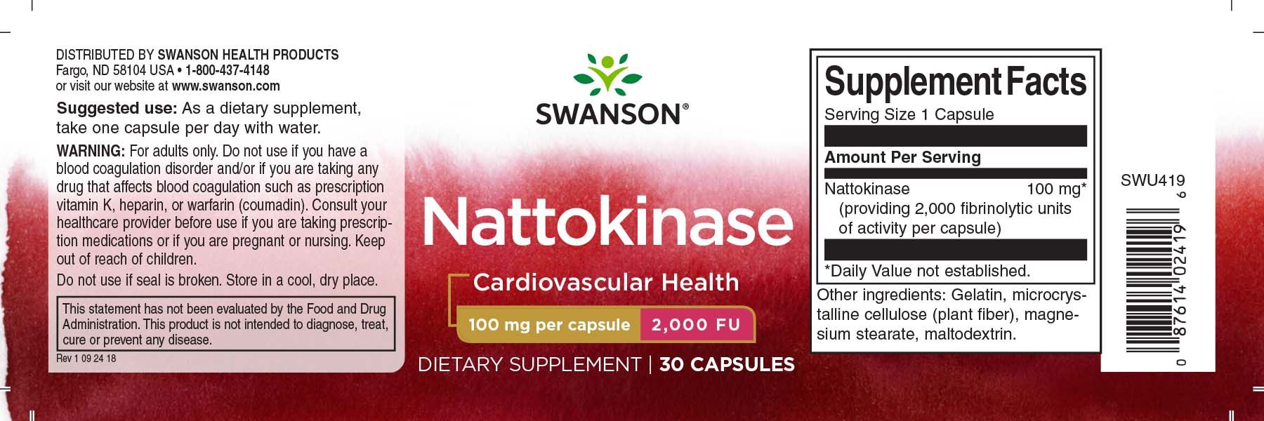 Swanson Nattokinase 2.000 FU 100 mg 30 Kapseln