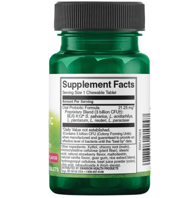 Swanson Oral Probiotische Formel Erdbeergeschmack 30 Kautabletten