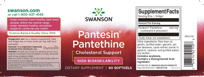 Swanson Pantesin Pantethine 300 mg 60 Weichkapseln