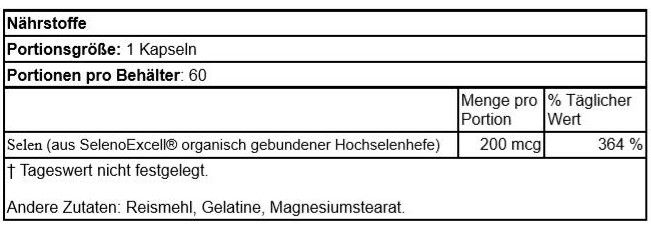 | Beschreibung | Swanson SelenoExcell ist 100% organisch gebunden, um eine hohe bioverfügbarkeit zu sichern. Diese hochdosierte Selen-Hefe Ergänzung, ist eine potente Form von Selen und bietet eine unübertroffene Unterstützung für zelluläre Antioxidantien - insbesondere für Herz und Prostata! Swanson Ultra ist stolz darauf, Ihnen 200 µg organisch gebundenes Selen in SelenoExcell-Formel anzubieten. |