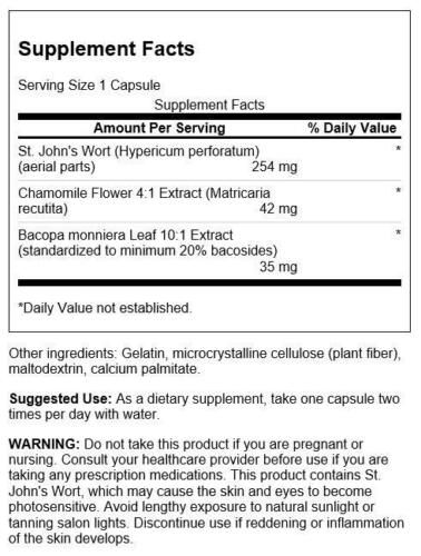 | Warnungen | Nehmen Sie dieses Produkt nicht ein, wenn Sie schwanger sind oder stillen. Konsultieren Sie vor der Anwendung Ihren Arzt, wenn Sie verschreibungspflichtige Medikamente einnehmen. Dieses Produkt enthält Johanniskraut, das dazu führen kann, dass Haut und Augen lichtempfindlich werden. Vermeiden Sie längere Einwirkung von natürlichem Sonnenlicht oder Bräunungslampen. Beenden Sie die Anwendung, wenn sich Rötungen oder Entzündungen der Haut entwickeln. |
