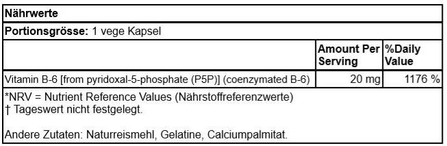 SWANSON VITAMIN B6 (PYRIDOXAL-5-PHOSPHATE) 20MG 60 KAPSELN