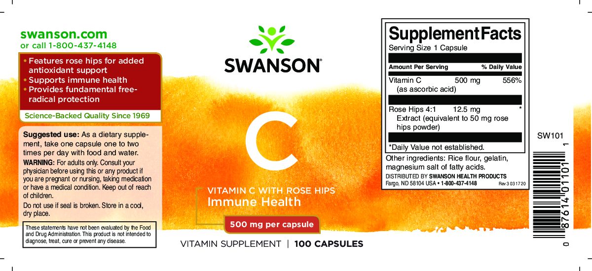 SWANSON VITAMIN C MIT HAGEBUTTENEXTRAKT 500 MG 100 KAPSELN