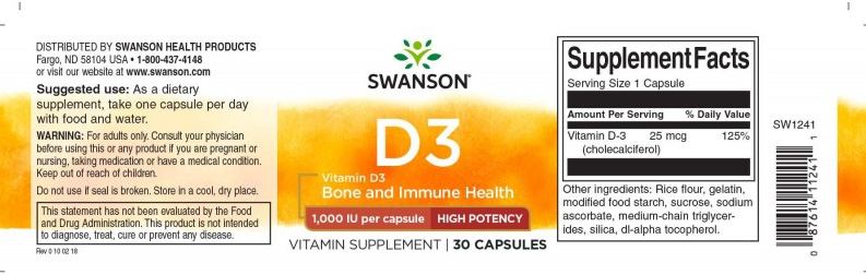 Swanson Vitamin D-3-HIGH POT 1.000 IE (25MCG) 30 Kapseln