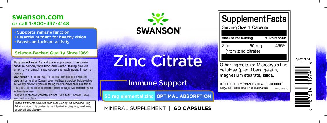 Swanson Zink Citrat 50mg 60 KAPSELN