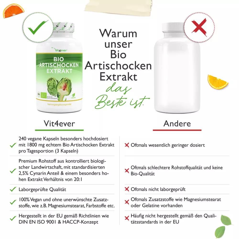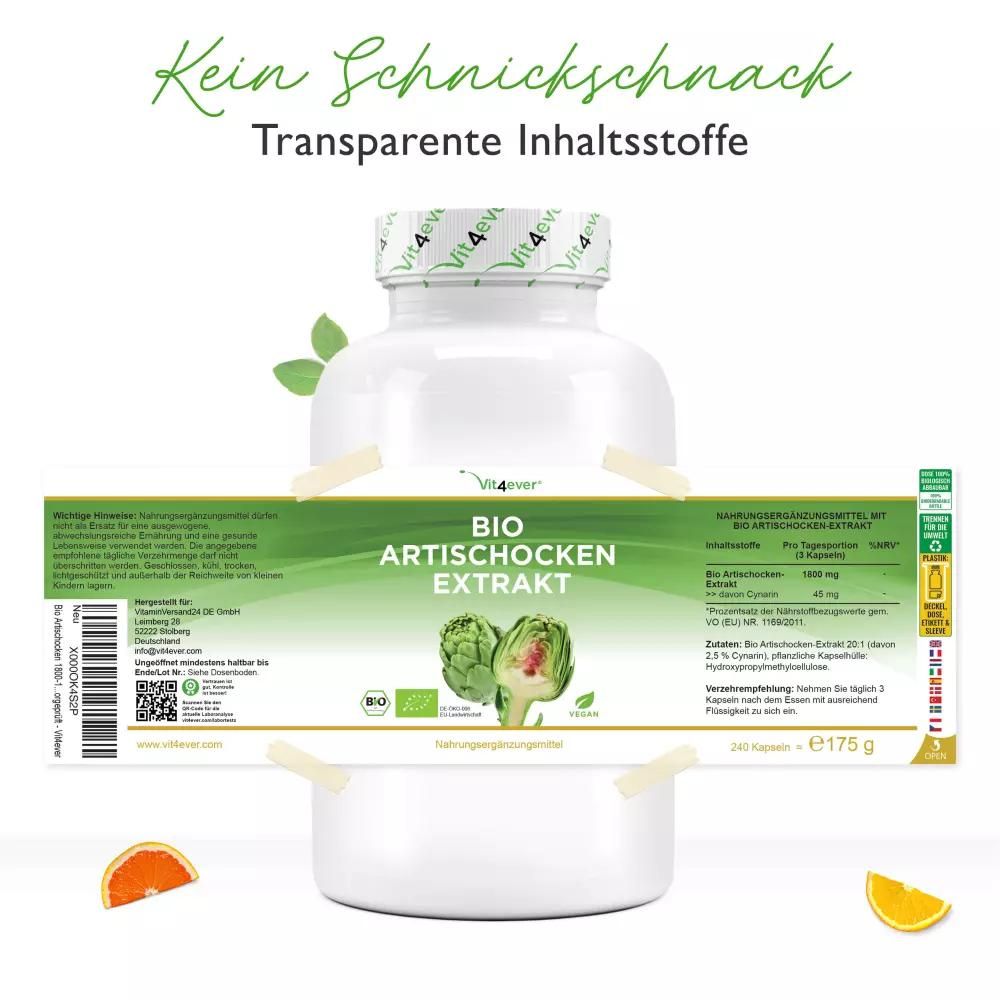 Vit4ever Bio Artischocken Extrakt - 2,5% Cynarin, 240 Kapseln