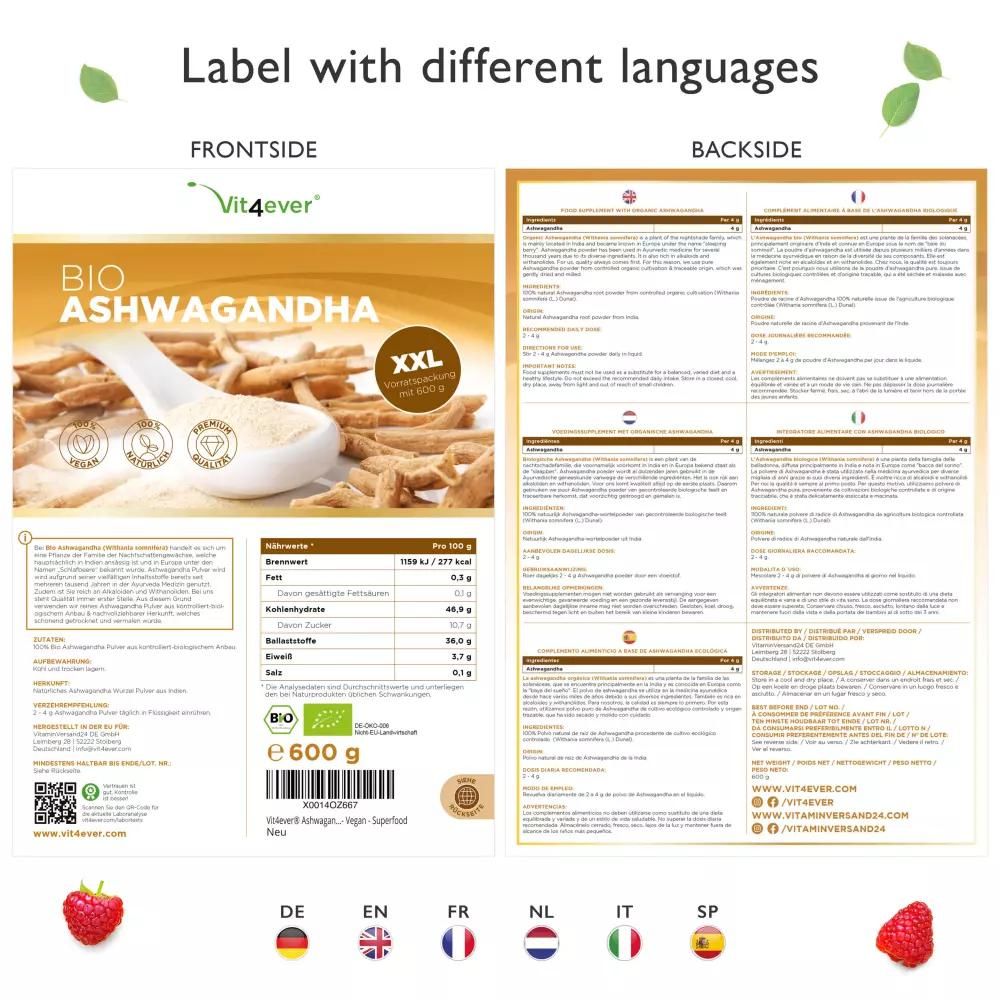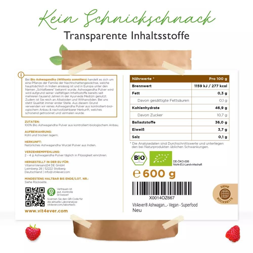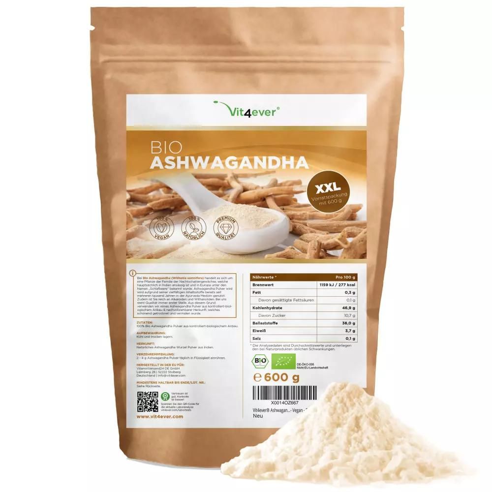 Vit4ever Bio Ashwagandha, ohne Zusätze, Pulver - 600 g