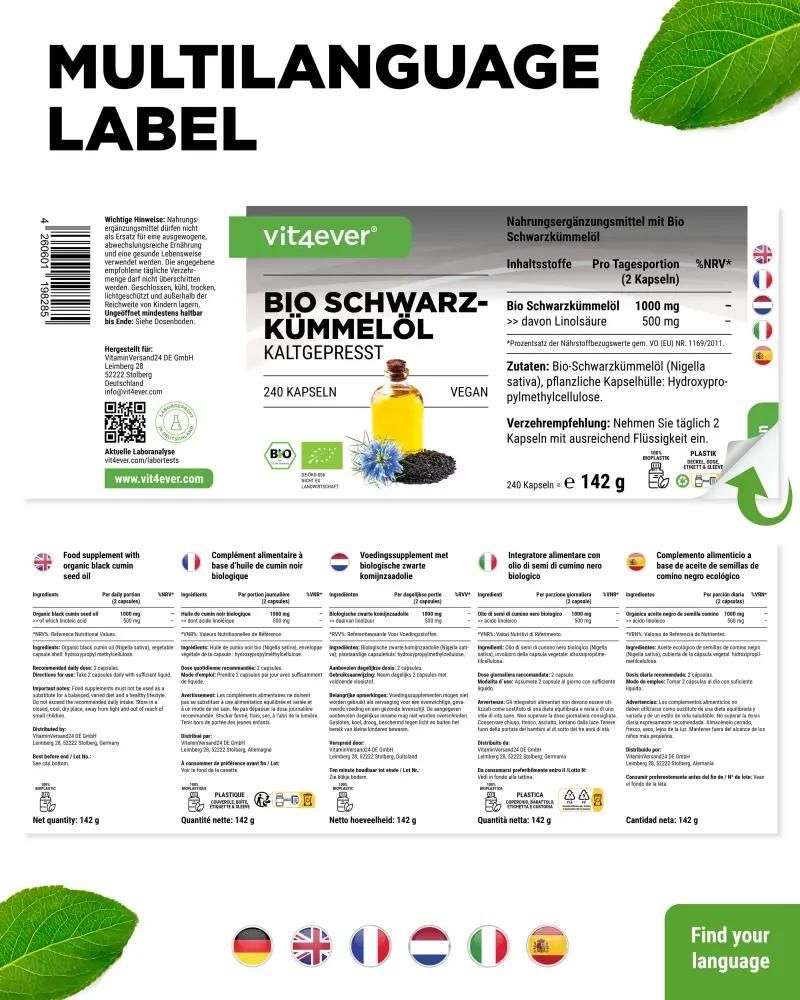 Vit4ever Bio Schwarzkümmelöl, 240 Kapseln