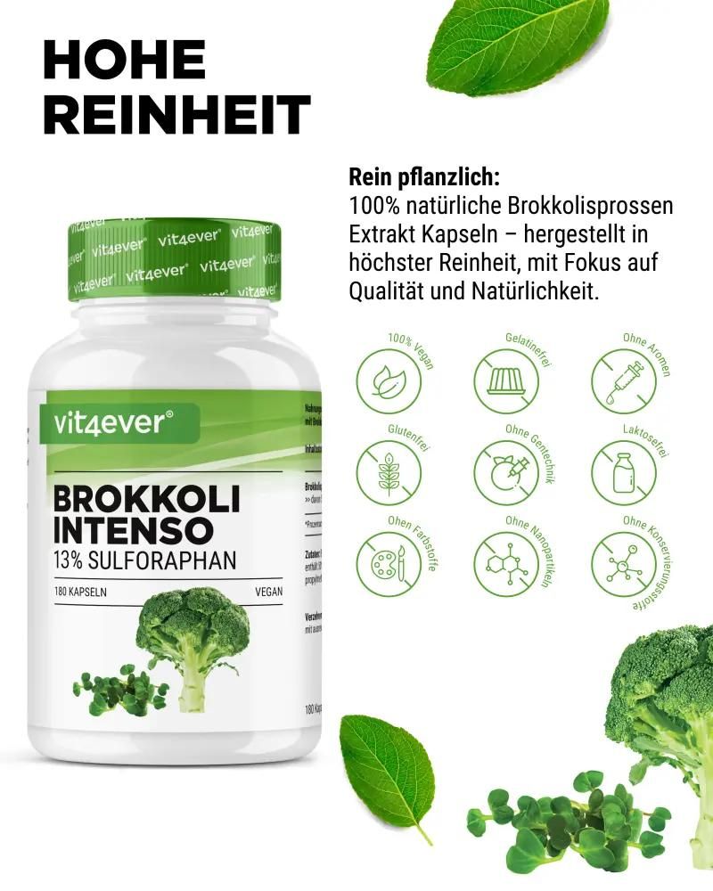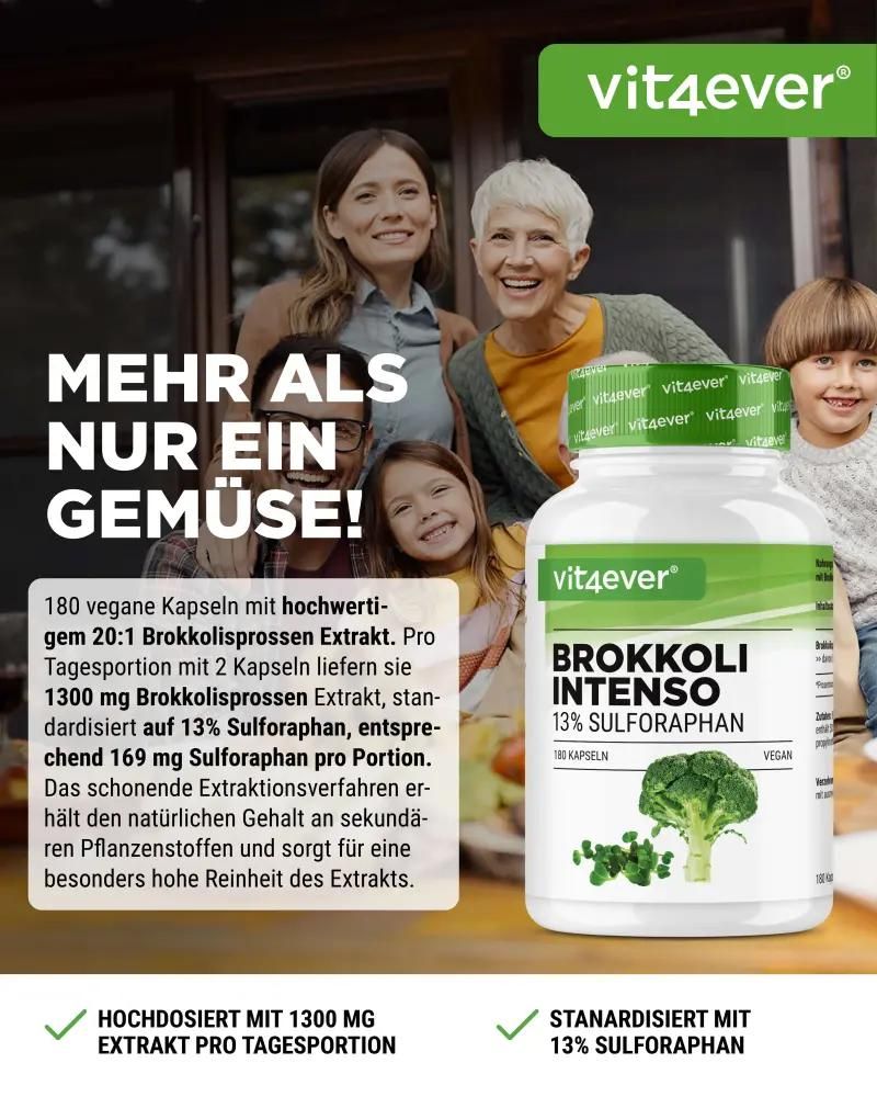 Vit4ever Brokkoli Extrakt - HOCHDOSIERT 13% Sulforaphan - 180 Kapseln